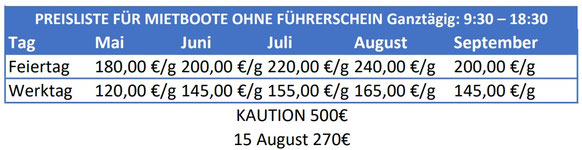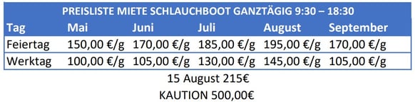 Vom 5. August bis zum 31. August gelten die Feiertagspreise.