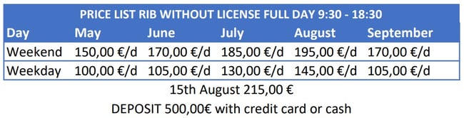 From 4th of August to 31st of August the rental price is weekend