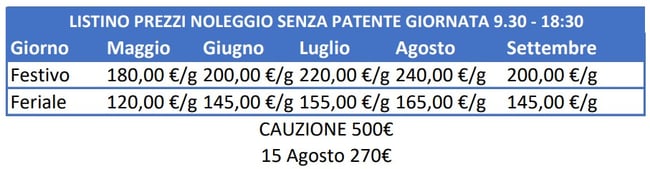 Dal 5 di Agosto al 31 di Agosto i prezzi si intendono Festivi